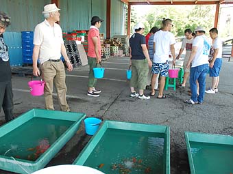 日本らんちう協会東部本部 横浜観魚会 第二回研究会 平成27年7月19日 矢作会長開会挨拶 審査場風景 審査風景 会場風景 第二回研究会 優等賞 1位 安藤 寛 2位 安藤 寛 3位 齋藤一成 4位 齋藤一成 5位 目黒康弘 第二回研究会 一等賞 6位 望月武雄 7位 鳴海 満 8位 栗原光生 9位 古瀬 充 10位 安田正伯 11位 斎藤宏典 第二回研究会 二等賞 12位 安藤 寛 13位 鳴海 満 14位 篠 孝利 15位 矢作雄一 16位 佐藤徳正