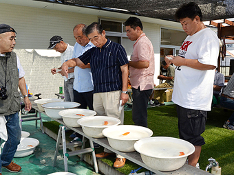 日本らんちう協会東部本部 埼玉らんちう会 第四回研究会 平成28年10月2日 五十嵐会長挨拶 会場準備 背腰チェック 審査 第四回 優等賞 東大関 山口辰也 西大関 黒澤郁夫 立行司 渡辺 仁 取締一 惣川正気 取締二 山中静郎 第四回研究会 一等賞 東関脇 惣川正気 西関脇 黒澤郁夫 東小結 今成雄一 西小結 鈴木一男 勧進元一 小島 昇 勧進元二 宮本好史 第四回研究会 二等賞 行司一 小沢 功 行司二 鈴木一男 行司三 山口辰也 脇行司一 笠原和雄 脇行司二 小島 昇
