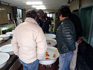 日本らんちう協会東部本部 平成24年度 楽友らんちう会(楽友会) 二歳会 平成24年4月22日 二歳会会場 二歳会準備完了時 出品魚 審査風景 二歳会 優等賞 東大関 大久保義彰 西大関 佐野 勝 立行司 矢ケ崎伸司 取締一 安中 浩 取締二 高久昌明 一等賞 東関脇 松本 浩 西関脇 森山禎紀 東小結 小串章生 西小結 今野一昭 勧進元一 稲村俊明 勧進元二 樫村正彦 二等賞 行司一 吉田義昭 行司二 山田隆夫 行司三 小泉順一 脇行司一 丸山克昌 脇行司二 須田友一郎