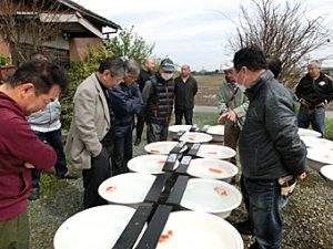 日本らんちう協会中部本部 三重支部 桑名愛錦会 二歳会 平成29年4月9日 審査風景 観覧風景 二歳会 優等賞 東大関 宇野正志 長久手市 西大関 谷地村政幸 愛知郡 立行司 出口智教 員弁郡 東取締 宇野正志 長久手 西取締 鎌田芳男 稲沢