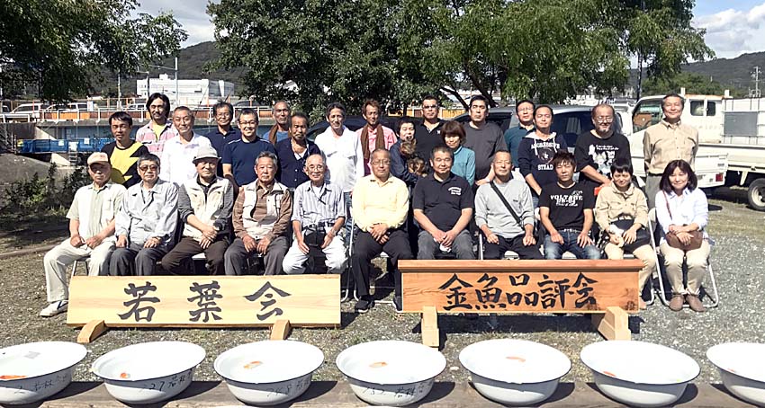日本らんちう協会中部本部 愛知支部 若葉会 第12回秋季品評大会 平成29年10月8日 若林会長 親魚 優等賞 東大関 古川伸二 西大関 金 成年 立行司 岡田正三 取締一 岡田正三 取締二 金 成年 二歳魚 優等賞 東大関 大久保敏男 西大関 金 成年 立行司 杉浦久敏 取締一 川口敦司 取締二 浅井雄司 当歳魚の部 優等賞 東大関 疋田秀雄 西大関 鈴木善嗣 立行司 中川元吉 取締一 金 敏幸 取締二 八木博明