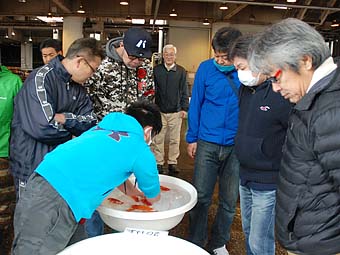 日本らんちう協会東部本部 平成30年度 横浜観魚会 二歳会 平成30年3月18日 於:横浜南部市場 横浜観魚会 会長挨拶 審査風景 観覧風景 二歳会 優等賞 東大関 壁谷俊彦 西大関 秋元和男 立行司 齋藤一成 取締一 野島隆一 取締二 田村 智 二歳会 一等賞 東関脇 加藤貞信 西関脇 篠 孝利 東小結 三宅雅也 西小結 森 寛登 勧進元一 野島隆一 勧進元二 安田英一 二歳会 二等賞 行司一 松田力三 行司二 秋元和男 行司三 中川元吉 脇行司一 金谷博一 脇行司二 瀬野正樹