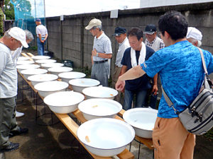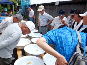 日本らんちう協会中部本部 津島愛錦クラブ 研究会 令和元年7月14日 会長挨拶 観覧風景 観覧風景 研究会 優等賞 東大関 山田重夫 愛西市 西大関 植田春寿 稲沢 立行司 植田春寿 稲沢 東取締 山田重夫 愛西市 西取締 井戸清文 津島市
