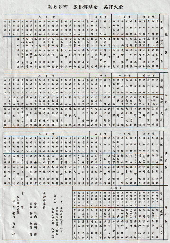 ■親魚の部(敬称略)