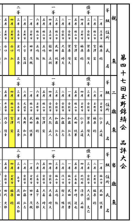 優等四席 玉野市 福原 稔
