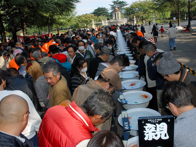 今年も来場者が多く、入賞魚を見るための行列は末席まで人、人、人であった。