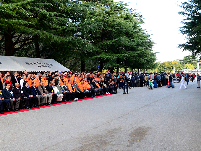 集合写真は中部本部での大会は横長に並ぶため、正面写真だけではなく、斜めからも撮影をした。後方の展示盥付近は、集合写真で人が少なくなるため、集合写真に参加された方の倍以上の方々が「ここぞ!」で入賞魚を観覧する風景は日らん全国大会ではいつでも見られる光景である。